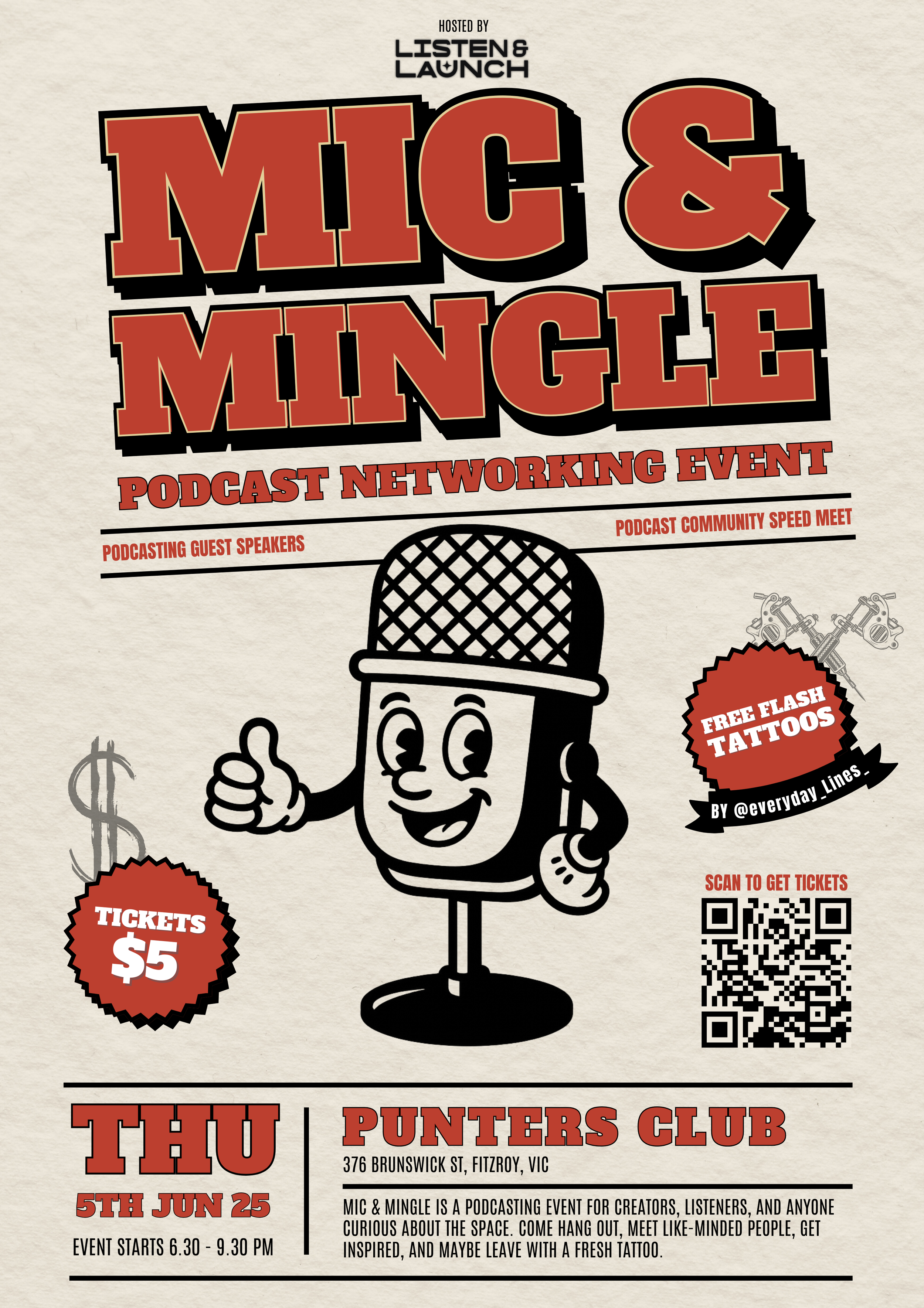 Events & Hangs Live shows, pop-ups, panels and meetups. MIC & MINGLE 5/6/25 Click here to view event full details →